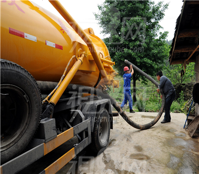 3、将吸粪车的吸粪胶管放入化粪池内启动吸粪车的开关,吸出粪便污物直至化粪池内的化粪凝固物基本吸完为止。
